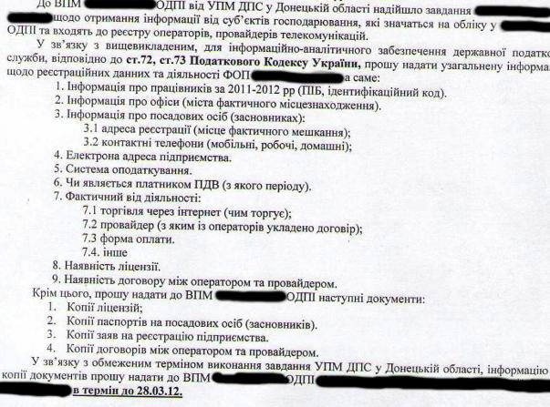 Ещё очень хочется спросить у налоговиков: ознакомились ли они ли они с: "ПОРУЧЕНИЕМ ПРЕЗИДЕНТА УКРАИНЫ О внедрении новейших технологий в сфере телекоммуникаций, соответствующих международным стандартам, обеспечении права свободного доступа граждан к сети Интернет"?