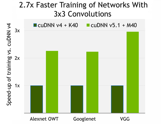Именно этим и занялся автор тестов. Стоит заметить, что результаты тестов не могут быть совсем точными, и дело здесь вот в чем — новое (Pascal) и старое (Maxwell) поколение Titan X использует четвертую и пятую версию библиотек cuDNN. Пятая версия данной библиотеки оказалась значительно более оптимизирована, и потому показывает лучшие результаты в тестах.