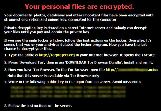 Окно, извещающее жертву о том, что файлы зашифрованы