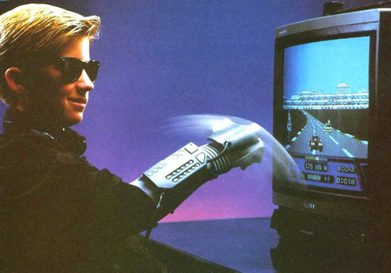 После технология виртуальной реальности выпала из поля зрения общества, развиваясь в научно-исследовательских лабораториях. Основное развитие было сосредоточено на транспортном моделировании, вплоть до 1980-х годов. В 1984 году учёный Майкл Макгриви (Michael McGreevey) начал экспериментировать с технологией виртуальной реальности в качестве способа интеграции человека в компьютерный интерфейс. Кроме того, на технологию один за другим начали обращать внимание тогда ещё некрупные, но уже очень амбициозные разработчики видеоигр. Первые игровые эксперименты начались с очередной модификации шлема и специальных манипуляторов, среди которых нашлось место даже беспроводной электронной перчатке. Так, в 1988 компания Abrams Gentile Entertainment, вдохновлённая фантастическими фильмами, выпустила перчатку для беспроводного управления играми Power Glove. Мечта всех игроков того времени стоила $1 тыс., весила почти 300 грамм — от такого «контроллера» рука начинала «ныть» буквально через несколько минут игры, а сенсоры перчатки почти всегда ошибались.