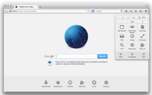 Firefox с интерфейсом Australis