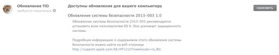 Обновление обладает номером 2013–003 и «весом» в 19,9 Мбайт, а скачать его можно абсолютно бесплатно в Mac App Store.