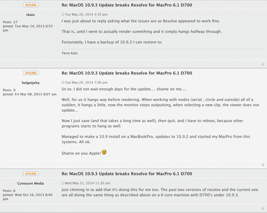 Владельцы Mac Pro столкнулись с проблемами в OS X 10.9.3