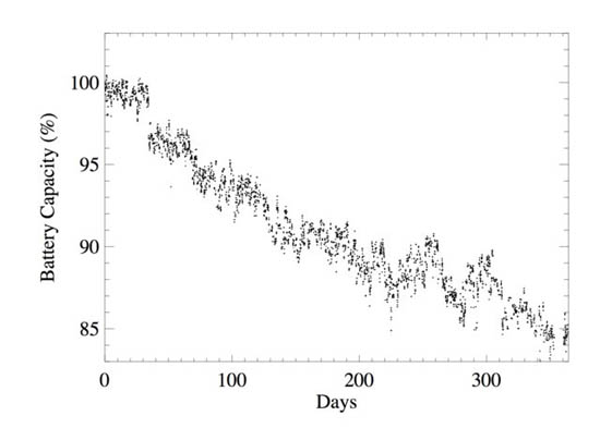Пользователь ноутбука MacBook Air Джеймс Дэвенпорт (James Davenport) с помощью программы CoconutBattery, которая ежеминутно снимает показания с батареи, собрал весьма любопытную статистику, отображающую падение ёмкости его батареи. Всего программа накопила 152 411 записей.