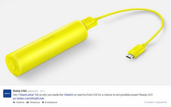 В конце-концов в Nokia USA объявили конкурс на лучшую историю об отказе от iOS в пользу мобильной операционной системы Windows Phone. В качестве приза было предложено фирменное зарядное устройство для гаджетов под управлением WP.