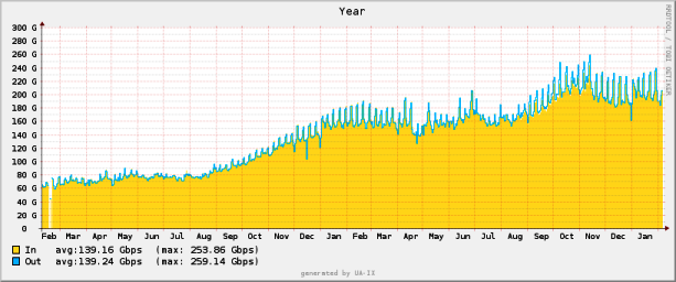 А наши спецы и чиновники о возможных проблемах с доступом в сеть во время ЕВРО 2012 пока помалкивают. А зря. Киев, Львов, Харьков и Донецк – не Лондон. И дорог поменьше, и связь похуже. В кошмарном сне, можно представить проезд в офис через Южный мост – загруженный автобусами с прилетевшими фанами и командами. Правда, можно попытаться протиснуться в метро. А вот, что прикажете делать с мобильной связью? Если приедет в Украину (как нам обещал профильный вице-премьер) около миллиона болельщиков - читайте свыше миллиона гаджетов, чем им в роуминге смогут помочь наши мобильные провайдеры? Что бы ответить на этот вопрос – нужно взглянуть на существующие входы их в UA.IX. На графике с мониторингового сайта ua.ix хорошо видет рост траффика