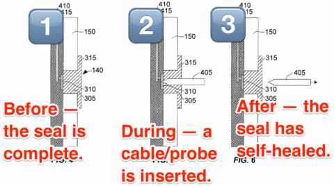 Идея патента заключается в том, что при подключении кабеля эластомер будет деформироваться, не мешая соединению. По отключении же кабеля эластомер будет восстанавливаться и препятствовать проникновению влаги. В сети уже появились первые изображения, приблизительно иллюстрирующие процесс функционирования технологии.