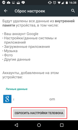 4.Нажмите на кнопку «Сбросить настройки телефона»