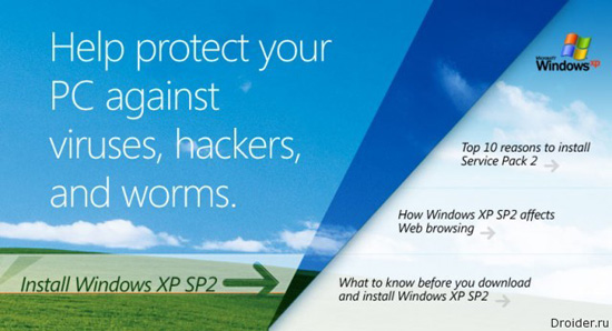 На удивление, сайт Microsoft 10-летней давности выглядит крайне привлекательно. На титульной страничке почти всё внимание уделено бессмертной Windows XP. Создается впечатление, что такой внешний вид сайта вполне свежо и уместно смотрелся бы и сегодня, замени в компании старый логотип на новый.
