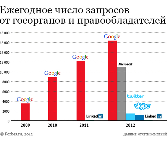 Первая порция статистики была готова к апрелю 2010-го: Google проанализировала все случаи запросов властей об удалении контента с серверов компании и предоставлении данных пользователей Gmail, YouTube и других сервисов. «Поисковые машины и провайдеры годами отказывались признаваться в том, сколько раз копы и федералы заставляли их сливать данные пользователей. Google нарушила этот обет молчания», — радовался тогда журналист Wired Райан Сигел.