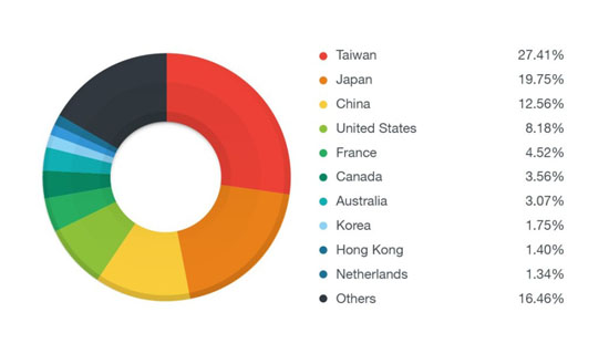 Малварь распространяется через скомпрометированные сайты в России и странах Азии. География атак JS_JITON при этом весьма обширна: больше всего пострадали пользователи Тайваня (27,41%), Японии (19,75%), Китая (12,56%), Великобритании (8,18%) и Франции (4,52%). Также среди пострадавших стран числятся Канада, Австралия, Корея, Голландия и другие.