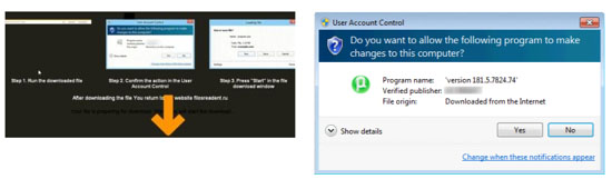 Так как в нормальных обстоятельствах выполнение скрипта будет блокировано Windows UAC (User Access Control), злоумышленники пошли дальше, они публикуют на фальшивых трекерах специальную инструкцию (см. иллюстрацию ниже). В инструкции сказано, что исполнение файла нужно разрешить, невзирая на протесты UAC.