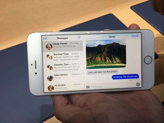 Кроме того, некоторые родные приложения iOS 8 в 5.5" модели оптимизированы под такую ориентацию — вплоть до двух колонок в интерфейсе вместо традиционной одной: