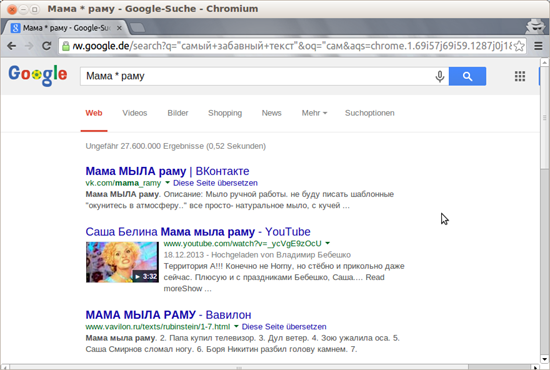 Забыли какое-то слово из поговорки, песни, цитаты? Не беда. Google всё равно поможет его найти. Поставьте звёздочку «*» на месте забытого слова.