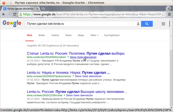 Google — лучший поисковик. И часто он лучше, чем встроенный поиск на сайтах. Именно поэтому рациональнее использовать Google для поиска информации на каком-нибудь сайте. Для этого вводим «site:lenta.ru Путин сделал».