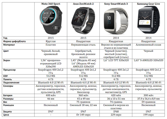 …Moto 360 Sport, Asus ZenWatch 2, Sony SmartWatch 3, Samsung Gear Live