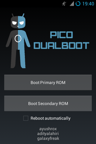 На данный момент в качестве основной операционной системы может быть использован только специально отредактированный образ CyangenMod 10 Beta 6. Возможно, в будущем появятся и другие образы с поддержкой Dual Boot. В качестве второй ОС можно взять любую прошивку, не использующую SD-EXT, включая стоковую.