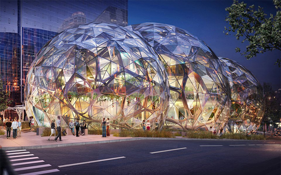 Среди штампованных многоэтажных зданий Сиэтла, отделанных железом и стеклом так приятно смотреть на нечто простирающиеся за пределы глобальной архитектурной мысли. Именно таким творением является новая штаб-квартира Amazon, строительство которой началось в январе 2014 года. Комплекс будет включать в себя три офисных здания, а также экоцентр — 25 метровое здание, состоящие из трех стеклянных прозрачных сфер.