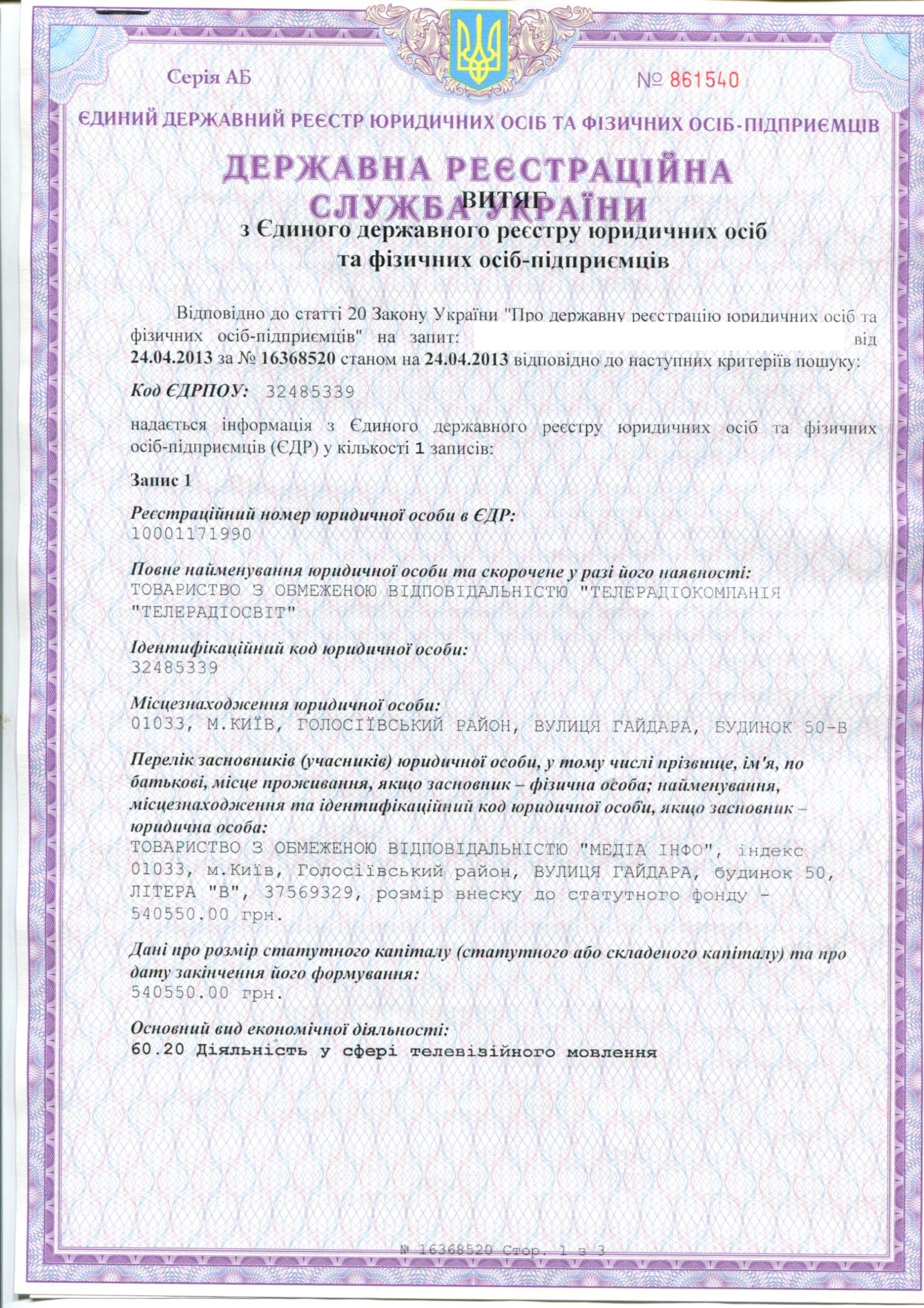 За несколько дней до описываемых событий, а именно 19 апреля 2013 года, состоялось общее собрание участников ООО «Медіа Інфо», которая владеет 100% акций ТРК «ТелеРадіоСвіт» (юридическое лицо телеканала ТВі). В свою очередь, «Медіа Інфо» на 5% принадлежит компании-нерезиденту Wilcox Ventures LTD и на 95% - «Балмор Инвест Лимитед», зарегистрированной в Лондоне на Шеперд Маркет Стрит, 8. Директором и владельцем 100% акций Balmore Invest Limited является некая гражданка Новой Зеландии Рейчел Эми Эриксон (Rachel Emy Erickson). Кроме нового владельца ТВi, она также является собственником более двухсот фирм, очевидно, выполняя роль номинального директора и владельца. Кто и каким образом умудрился переоформить 95% уставного фонда компании - должно выяснить, отнюдь не журналистское, расследование.