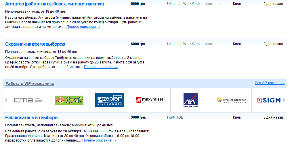Там, где пахнет легкими деньгами, обычно много грязи. Люди пытаются выехать друг на друге. Взаимонаеживание начинается уже на начальном этапе – выборе подходящей вакансии в Интернете. Уличная агитация и торчание в палатке по 8 часов за 120-160 грн. – вариант для студентов или приезжих. Интересна она тем, что не требует впечатляющего уровня IQ и поставленной дикции.