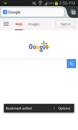 4. Щоб перенести закладку на домашній екран, тапніть на пункті «Опції». Це необхідно робити швидко, оскільки вікно зникає через декілька секунд без активності.