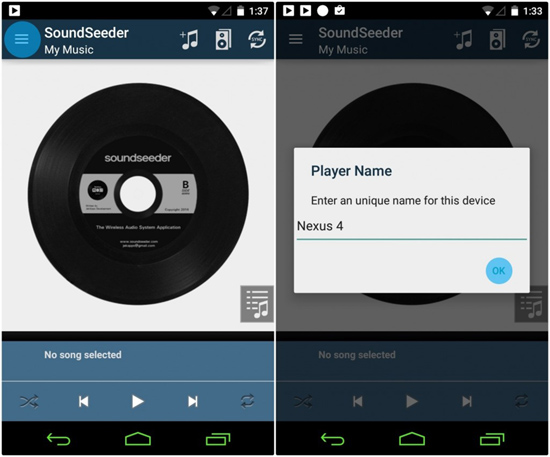 Для синхронізації програвання мелодій у гаджети необхідно встановити програму SoundSeeder. Після цього задайте ім’я пристрою, щоб його можна було знайти серед інших.
