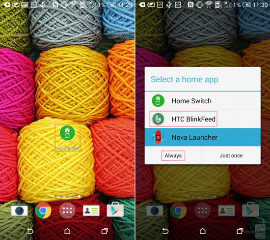Версії операційної системи нижче 4.4 не мають зручних інструментів для зміни лаунчера, тому потрібно скористатися сторонньою утилітою Home Switch. Вона дозволяє змінювати оболонку одним натисненням кнопки.
