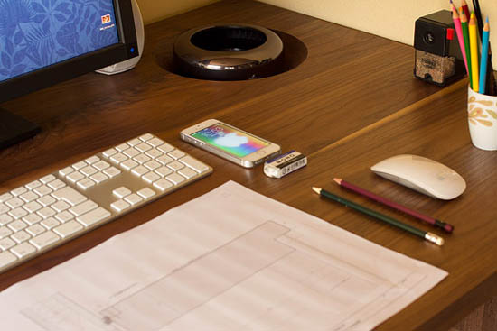Японский архитектор Такара Мару – фанат минимализма. В его понимании на компьютерном столе должно находиться только все самое нужное. Поэтому он решил спроектировать особый стол для своего цилиндрического Mac Pro. Главная цель сделать так, чтобы мини-компьютер все же находился на столе, но был скрыт от его глаз. «Так лучше концентрироваться на работе», – пишет Такара у себя в блоге.
