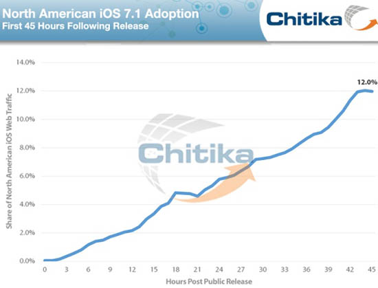Владельцы устройств Apple в очередной раз доказали, что они “легки на подъем”, когда дело касается обновлений мобильной платформы. Менее чем за два дня обновленная версия iOS 7.1 была установлена на 12% всех iPhone, iPad и iPod touch.