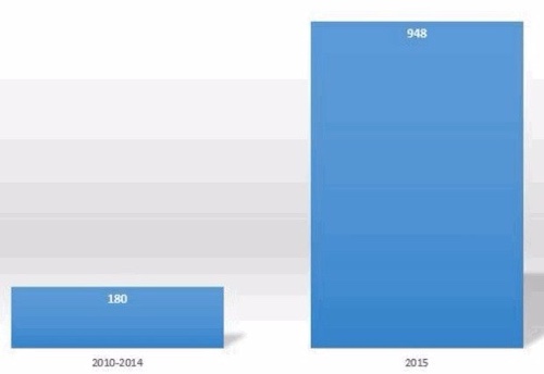 С начала 2015 г. для операционной системы Apple OS X было обнаружено столько вирусов, сколько за пять последних лет вместе взятых, с 2010 по 2014 г.г. Всего в 2015 г. для платформы Mac было найдено 948 вредоносных приложений, тогда как за предыдущие пять лет — всего 180 разновидностей, сообщает исследовательская компания Bit9 + Carbon Black.