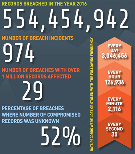 Согласно информации из последнего отчёта Breach Level Index, опубликованного компанией Gemalto, за шесть месяцев с начала этого года во всем мире было похищено свыше 554 млн записей. Это на 15% больше, чем за предшествующий полугодовой период.