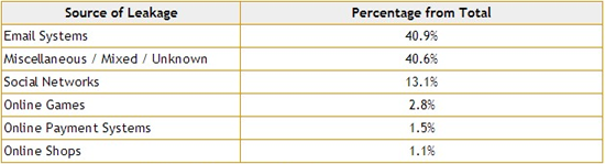 Наиболее популярной социальной сетью, учетные данные из которой размещены в открытом доступе, является Facebook - 92% всей похищенной из социальных сетей информации. Twitter занял второе место с показателем 7,8%. Статистика относительно всех типов скомпрометированных web-сервисов доступна на диаграмме:
