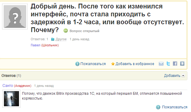 Другие пользователи жалуются на задержку с отправкой и получением писем: