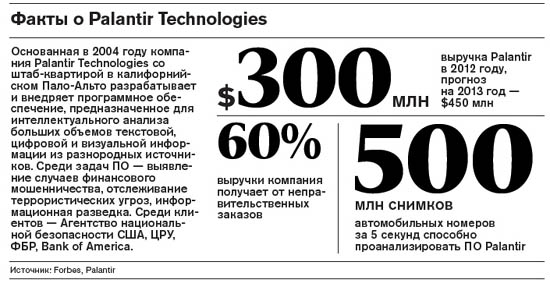 Стоимость компании Palantir, услугами которой пользуются АНБ, ЦРУ и ФБР, оценивается как минимум в $5 млрд, а ее системы, возможно, помогли выследить Усаму бен Ладена