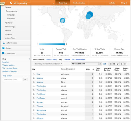 Интерес всегда есть. Вот, к примеру, снапшот избранной аналитики сайта моего дистрибутива Liberté Linux (включающего в себя Tor в качестве центрального компонента) с доменами тех представителей спецслужб, которые поленились установить AdBlock, или использовать тот же Tor для доступа к сайту (более детальная статистика не ведется). В США можно отметить: Агентство национальной безопасности (NSA), Разведывательное управление Минобороны (DIA), ЦРУ, ФБР (домен cjis). В России — ФСБ и друзья из радиочастотного центра. Понятно, что каждый визит в отдельности ничего не значит, но, как сказал Чукча в известном анекдоте: «Однако, тенденция».