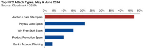 «Нью-Йорк стал четвертым регионом, после Лос-Анджелеса, Сан-Диего и Майами, где было получено больше всего спам-сообщений. Из всего SMS-спама, зафиксированного в Большом яблоке в течение последних двух месяцев, 47% приходится на владельцев iPhone», – говорится в сообщении Cloudmark. В рамках спам-атаки пользователи iMessage получают рекламные уведомления с предложением перейти на сайты брендов Louis Vuitton, Gucci, Prada и Ray Ban Sunglasses.
