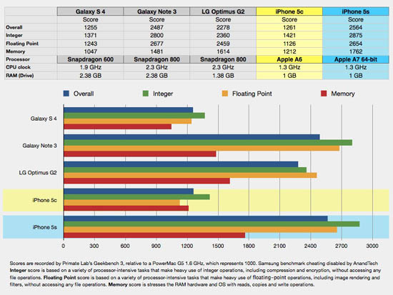 Galaxy S4 от Samsung обладает аналогичными показателями производительности, несмотря на более высокую частоту процессора и количество оперативной памяти. Продолжительность работы iPhone 5c выше, чем у Samsung S4 или даже Note 3 с его по-настоящему большим аккумулятором. Это также касается остальных смартфонов Android этого класса.