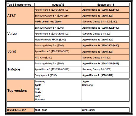 Согласно сообщениям в США Genuity Canaccord, продажи всех этих смартфонов в августе возглавили чарты AT&T, Verizon, Sprint и T-Mobile.