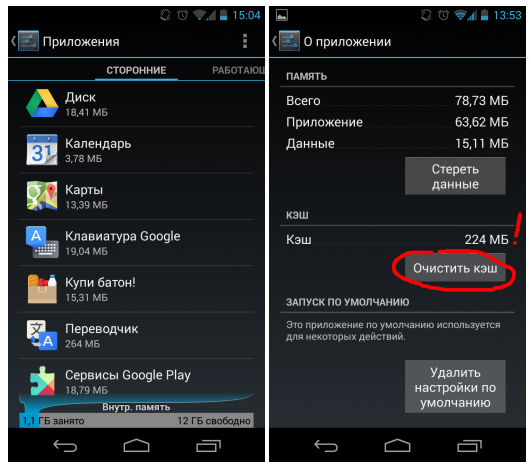 Также можно выборочно очистить кэш у отдельных приложений.