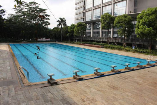 Снаружи общежития журналисты увидели элементы благоустройства, которые вполне вписывались в образ студенческого кампуса. Это был небольшой открытый стадион с трибунами, газоны, на которых отдыхал народ, и даже бассейны на свежем воздухе. Хотя на тот момент пловцов в них не было. По словам господина Ву, причиной тому оказалась холодная зимняя погода.