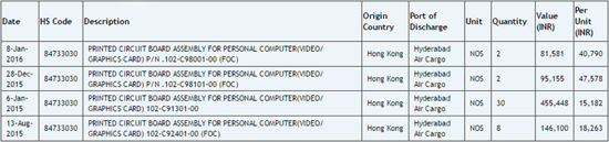 Банально, но остаётся лишь в очередной раз повторить, что индийская база данных импорта-экспорта Zauba.com продолжает оставаться неиссякаемым источником информации о новых продуктах ведущих производителей аппаратного обеспечения. Пусть эта информация зачастую и не отличается полнотой, но порой позволяет сделать ряд любопытных предположений и прогнозов. На этот раз улов получился особенно богатым: в базе были замечены новейшие графические решения как NVIDIA, так и AMD. В первом случае точных указаний на то, что речь идёт о чипах Pascal, нет. Данные в графе HS Code, указывающей место отправления, не соответствуют обычным для NVIDIA цифрам. Возможно, таким способом компания пытается запутать искателей свежих новостей.