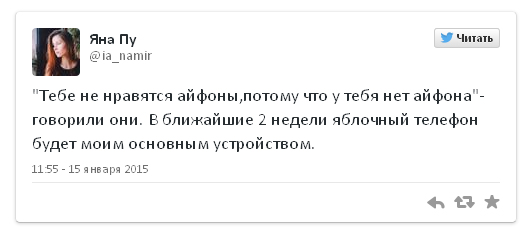 Начну с приветственного слова: меня зовут Яна и я люблю Windows Phone. Нетрудно догадаться, какое количество саркастичных комментариев по этому поводу я регулярно получаю от знакомых, друзей и коллег. Покинув ради мира плиток и гигантских шрифтов Android, я ни разу не пожалела о своем выборе, но мое решение не могло считаться объективным без опыта использования iOS.