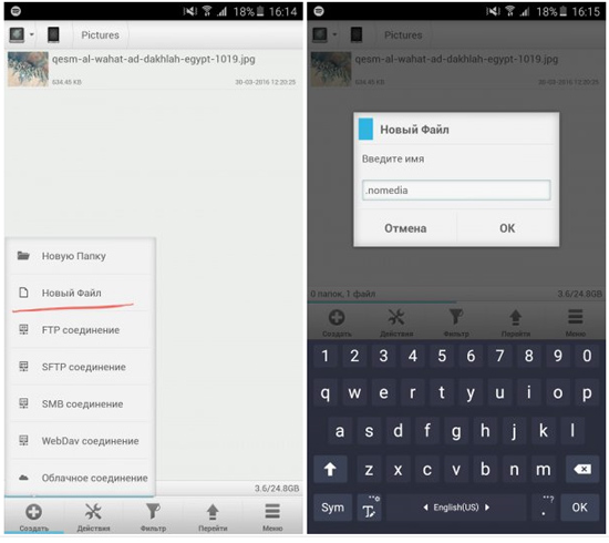 -Назовите его “.nomedia” (без кавычек) и сохраните изменения. Этот файл запретит другим