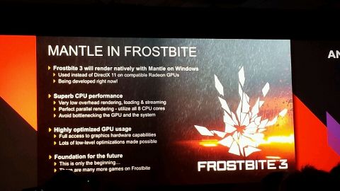 Помимо новых видеокарт, AMD представила вчера несколько связанных с ними новых разработок. Одной из них является низкоуровневый интерфейс Mantle, представляющий собой сочетание API и драйверов графического процессора, которое позволит разработчикам наиболее полно раскрыть потенциал графической архитектуры GCN как на новых, так и на уже существующих видеокартах AMD.