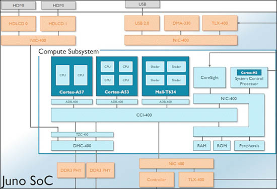 Компания ARM представила аппаратную платформу Juno, предназначенную для создания устройств с поддержкой 64-битных вычислений под управлением операционной системы Android.