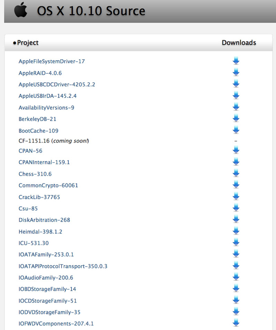 На сайте Apple выложены исходные коды Darwin 10.10, включая ядро xnu-2782.1.97. В прошлом году в конце октября компания открыла исходные коды OS X Mavericks.