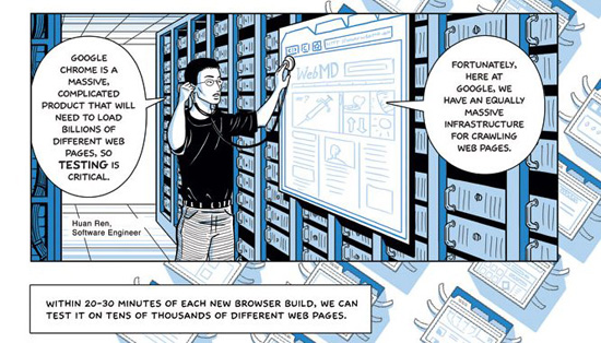 Анонс Chrome не обошелся без курьеза. Одновременно с браузером 3 сентября 2008 года планировалось выпустить брошюру знаменитого комиксиста Скотта Макклауда, в форме комикса рассказывающую о процессе создания и возможностях нового браузера. Но преисполненный нетерпения художник не смог дождаться официального релиза и выложил отсканированный комикс в своем блоге уже 1 сентября, после чего Google пришлось спешно публиковать его на Google Books и давать объяснения в официальном блоге.