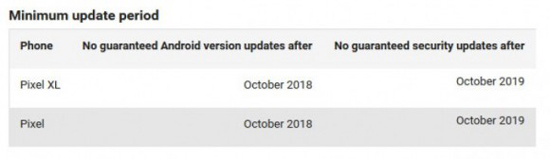 Компания Google опубликовала информацию о поддержке текущего поколения смартфонов Pixel и Pixel XL. Устройства будут получать новые версии операционной системы Android на протяжении двух лет после выхода, а обновления для системы безопасности — на протяжении трех лет.