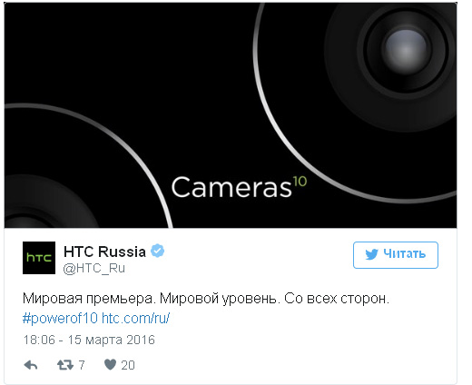 Компания HTC пообещала в своем мини-анонсе мировой уровень камеры у флагманского смартфона HTC One M10. Как стало известно ранее от инсайдеров, первые официальные новости появятся позже запланированного срока – 19 апреля 2016 года.