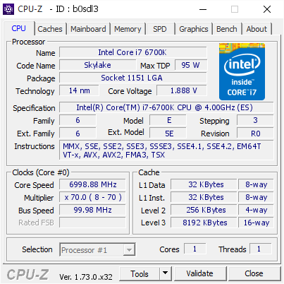 Этот рекорд оказался не столь удачен, как предыдущий — если при разгоне Core i7-4770K удалось сохранить два работающих ядра, то в случае со Skylake частота 7 ГГц покорилась только одному ядру. При этом напряжение питания пришлось повысить с 1,2 до 1,888 вольта. Платформой послужила системная плата ASRock Z170 OC Formula, дополненная модулем G.Skill Ripjaws 4. Охлаждался процессор жидким азотом, было ли проведено его «скальпирование» — источник не сообщает.